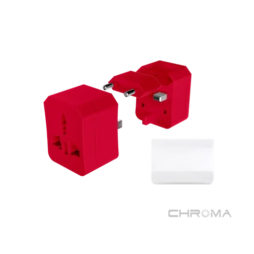 This colorful universal travel adapter covers more then 150 country's wall adapters. Includes a built in fuse protection. Perfect for everyone on the go. All stored in a nice clear case!