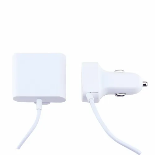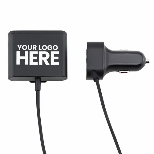 The Road Trip car charger provides all the power and charging ports (even one USB Type C port!) to keep your mobile devices charged while road-tripping! Features: - Front Seat Charging Ports with total 3.4 A Output: 2 x USB; 1 x Type C. Simultaneously charge 3 iPhones at full speed. - Back Seat Charging Ports with total 3.4 A Output: 2 x USB. Simultaneously charge an iPad and an iPhone at full speed - Cable Length: 6 Feet.