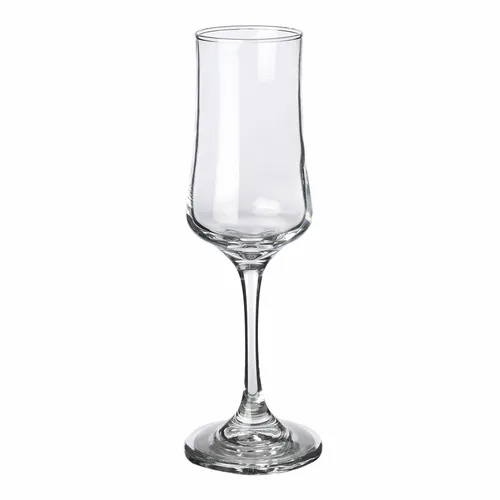 6 oz. Champagne Glasses. Flared Rose Bud Inspired Shape. Crystal Clear Clarity for Exceptional Product Visibility. Recommended Hand Wash Only