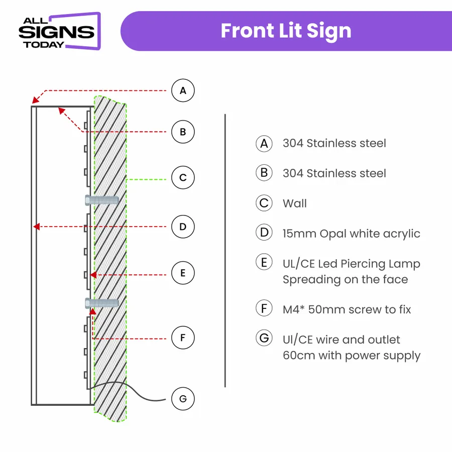 Upgrade your space with a touch of modern elegance and make a statement that truly stands out. Order our LED Face Lit Letter Sign today and let its radiant glow illuminate your surroundings in style.