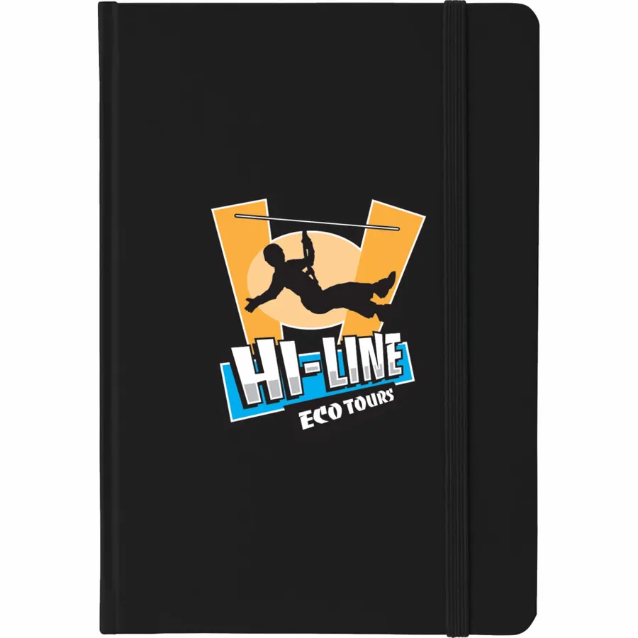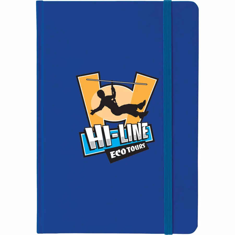 The Bullet 5 x 7 FSC Mix Large Rainbow Notebook comes in a variety of colors. This brightly hued notebook includes 80 FSC Mix white ruled pages. It features a matching color elastic closure, as well as a matching color ribbon bookmark.
