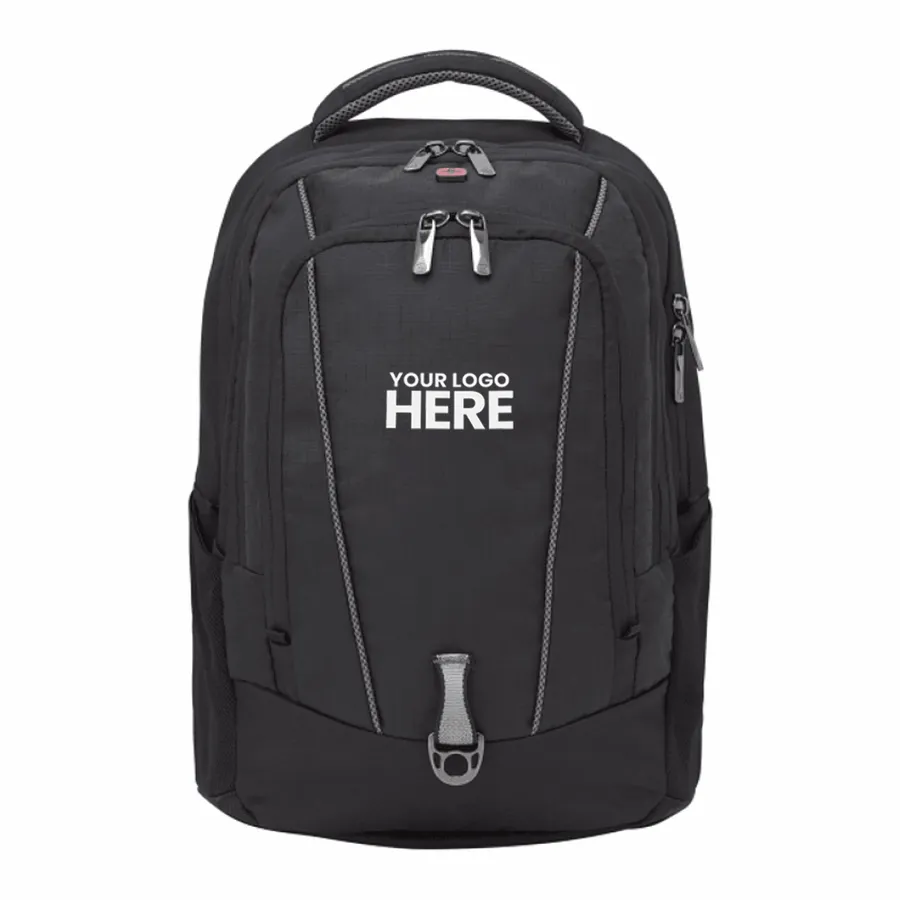 The Wenger Origins Recycled 15” Computer Backpack is made from eco-friendly RPET. The open main compartment features a 15” computer sleeve, plus plenty of room for your belongings. The bag also features an organizational front pocket with key fob, an additional zippered pocket and a mesh foam pocket. The front panel offers a custom d-ring for hanging carabiners. This bag features Wenger Airflow moisture-wicking mesh, a supportive back board for computer protection and a back webbing trolley sleeve.