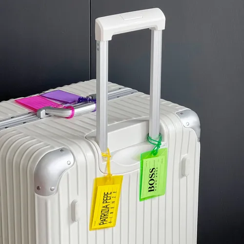 Our luggage tags are crafted from high-quality materials such as PVC, leather, or acrylic, depending on the product.
