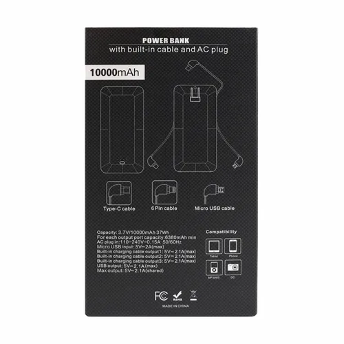 Charge All 10k - 10,000 mAh Power Bank with Integrated Charging Cables and AC Plugs