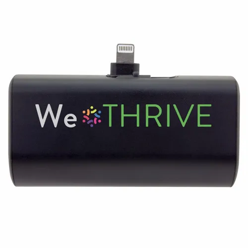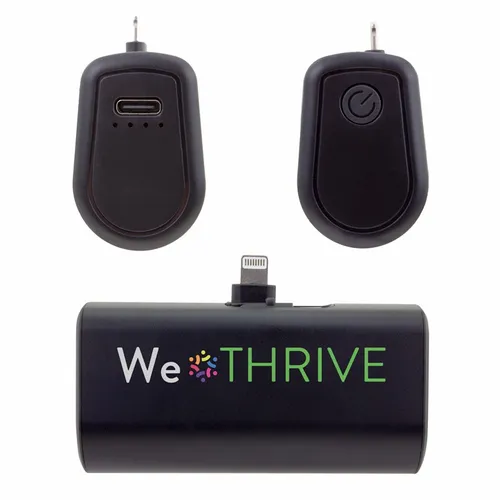 A dual charging power bank with built-in Lightning and Type-C plugs that can be flipped down when not in use. It is easy to attach to a phone and use throughout a workday while on business trips or during vacation travel.