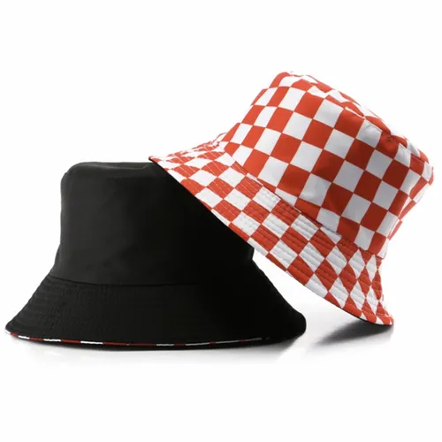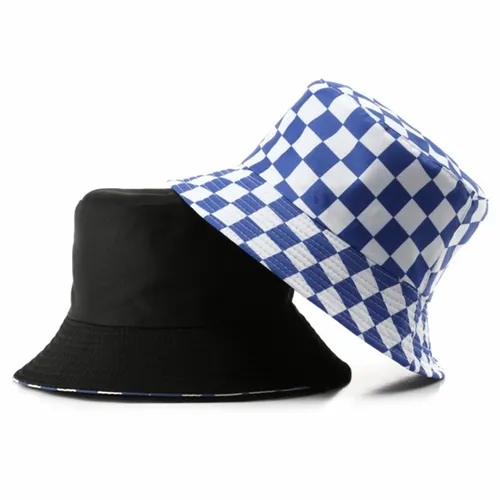 This type of bucket hat is made of cotton material and features a checkered pattern. In the case of a bucket hat, the checkered pattern covers the entire hat, including the brim. The checkered cotton bucket hat is designed to be comfortable and breathable, making it suitable for outdoor activities. The good thing about its cotton material is that it is lightweight and absorbs moisture, keeping the head cool and dry in warm weather.