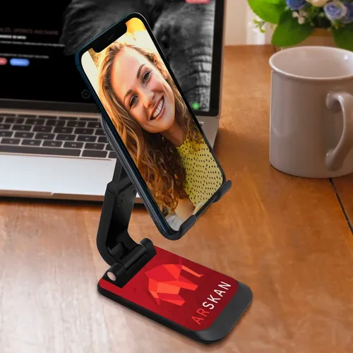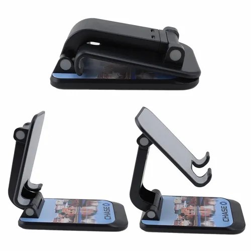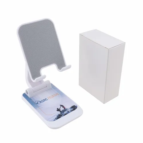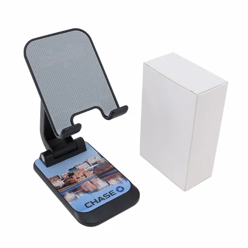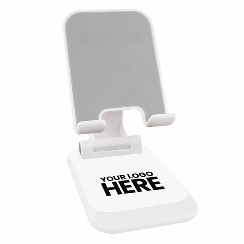 The Phone Stand helps busy teams keep their phone screens visible on home or office desktops. It reliably holds a phone in an elevated and upright position and will not block a phone's plug-in port. It is easy to use and keeps your hands free during those important video virtual meetings. So you can feel more comfortable and confident when closing that deal or presenting your next great idea. When not in use, it is foldable and compact so you can take it with you anywhere.