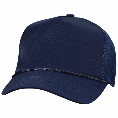 Cotton Twill Front Panel, Mesh Sides and Back, Structured, Mid-Profile, Five Panel, Pre-curved Visor Sewn Eyelets, Plastic Tab Adjust, One Size