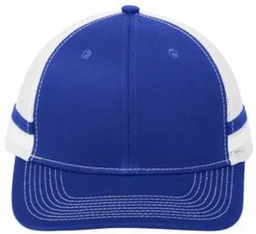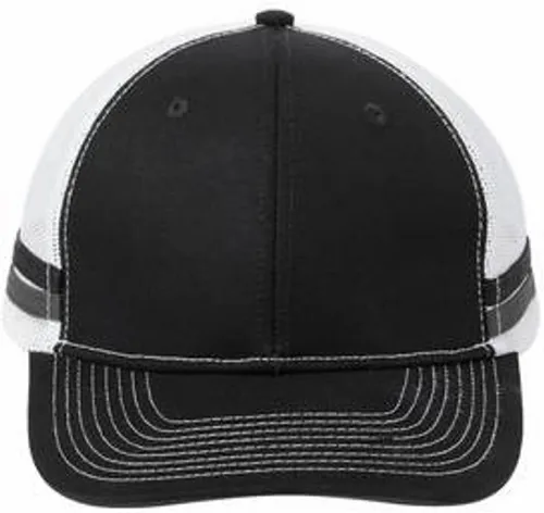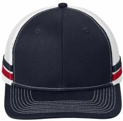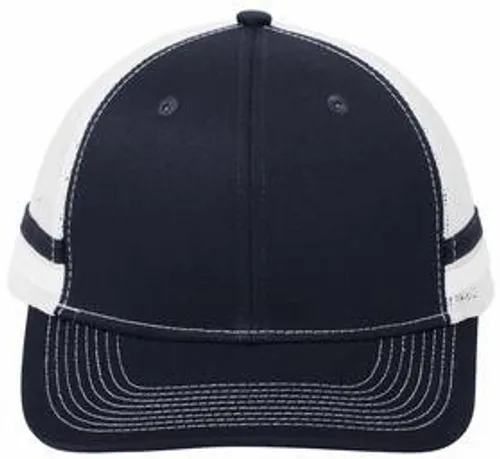Fabric: 100% cotton twill front panels and stripes; 100% polyester mesh mid and back panels Structure: Structured Profile: Mid Closure: 7-position adjustable snapback