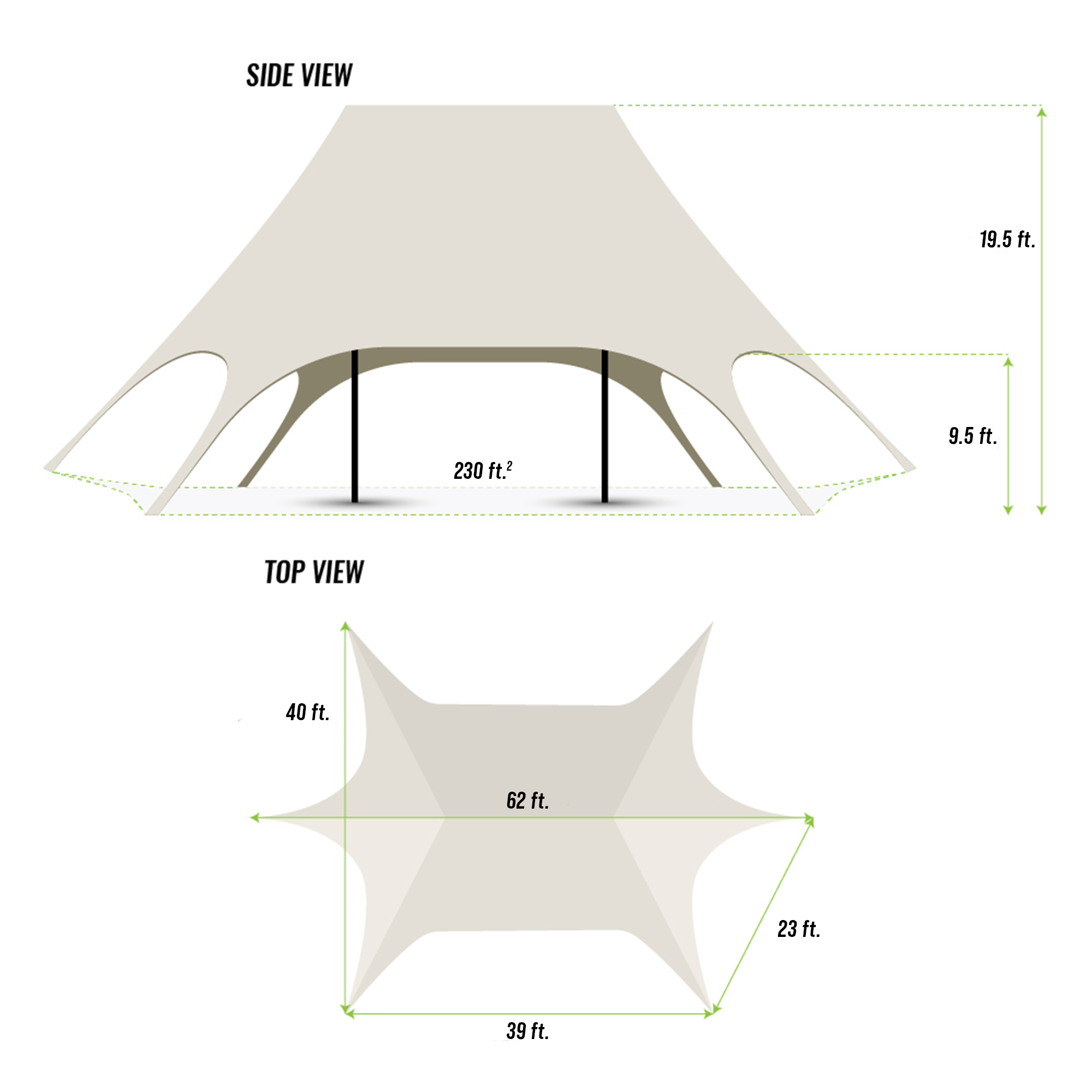 Elevate your outdoor presence with the immense and visually striking Double Pole Star Tent. Its unique, twin-peak star design creates a vast, open-air canopy, offering an exceptional solution for large-scale events, festivals, corporate gatherings, and promotional campaigns. Engineered for stability and designed to impress, this tent provides extensive shade and a high-impact promotional space, ensuring your brand captures attention and your guests stay comfortable. The expansive, dual-pole structure is perfect for covering large areas for everything from weddings to machinery displays.