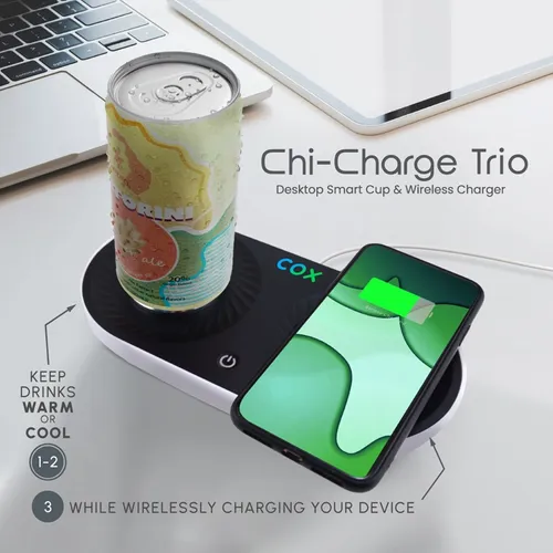 The Chi-Charge Trio is one of the smartest desktop companions anyone would love to have at home or office. It helps keep wirelessly charged devices powered up and regulates the temperature of hot and colds. It is easy to use and comes with a mug too.