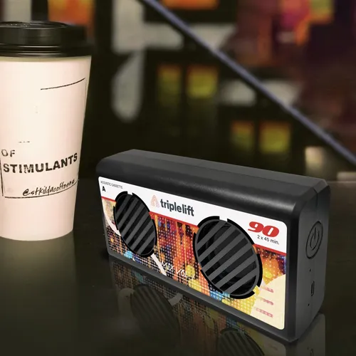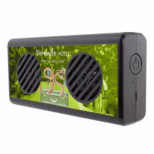 A wireless speaker with full-color printing on the front. It has a powerful sound output with two 4W speaker units. It's great for in-the-office background music or recreational get-togethers.