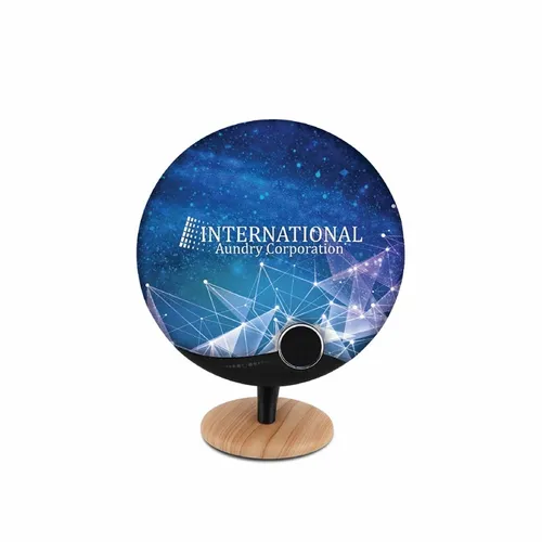 A classic take on a modern speaker. The gramophone has been an ageless symbol of musical innovation represented in awards and industry revered products. This retro speaker is equipped with a powerful speaker and a wireless capability, bringing an ageless classic to a modern era. With a large screen cover your client's logo will be the center of attention at any event.
