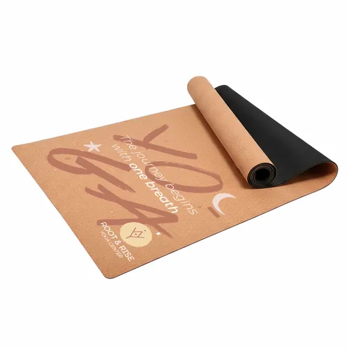 • Align your brand with nature and performance with our premium Cork Yoga Mat. This eco-friendly mat is the perfect promotional item for yoga studios, wellness retreats, and environmentally conscious companies. The natural cork surface provides a superior non-slip grip that improves with moisture, ensuring stability and confidence during any practice. Paired with a convenient carrying bag, this mat is ready for the studio or the outdoors, offering a beautiful and functional canvas to showcase your full-color logo or design.